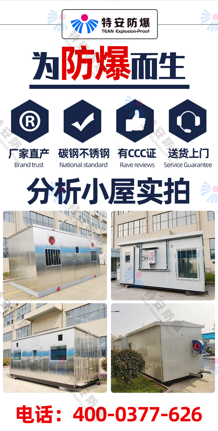 特安防爆專業(yè)生產(chǎn):防爆小屋,防爆分析小屋,正壓防爆房,防爆站房,防爆安全分析小屋。